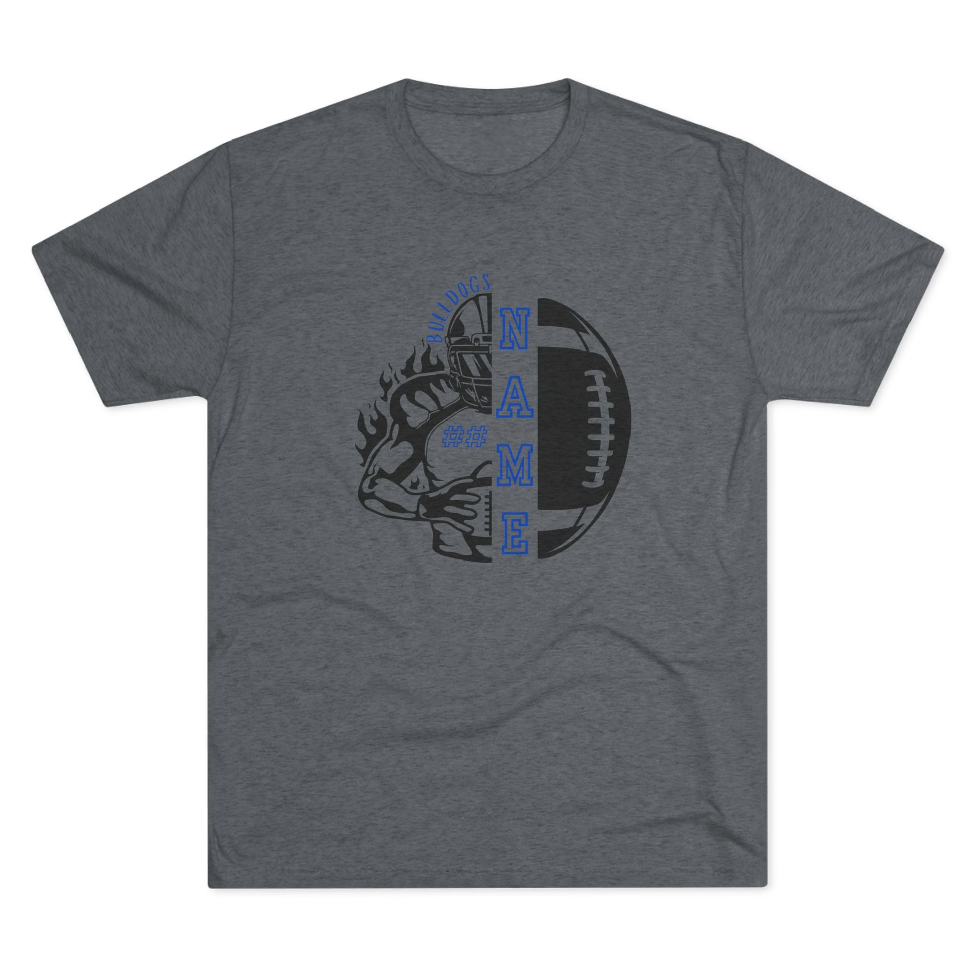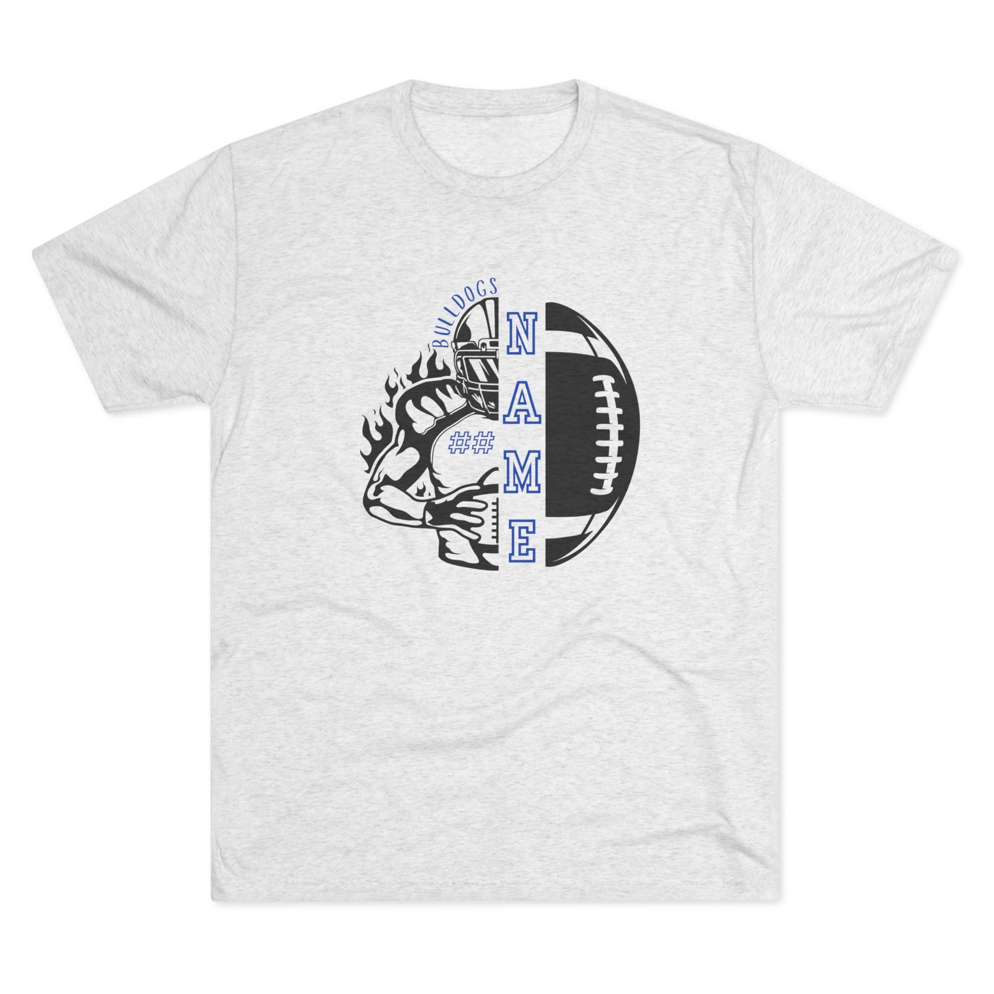 Rep your team in style with this custom Bulldogs football t-shirt! Features bold team graphics on the front and can be personalized with any name and number on the back. Perfect for players, fans, and proud football families.