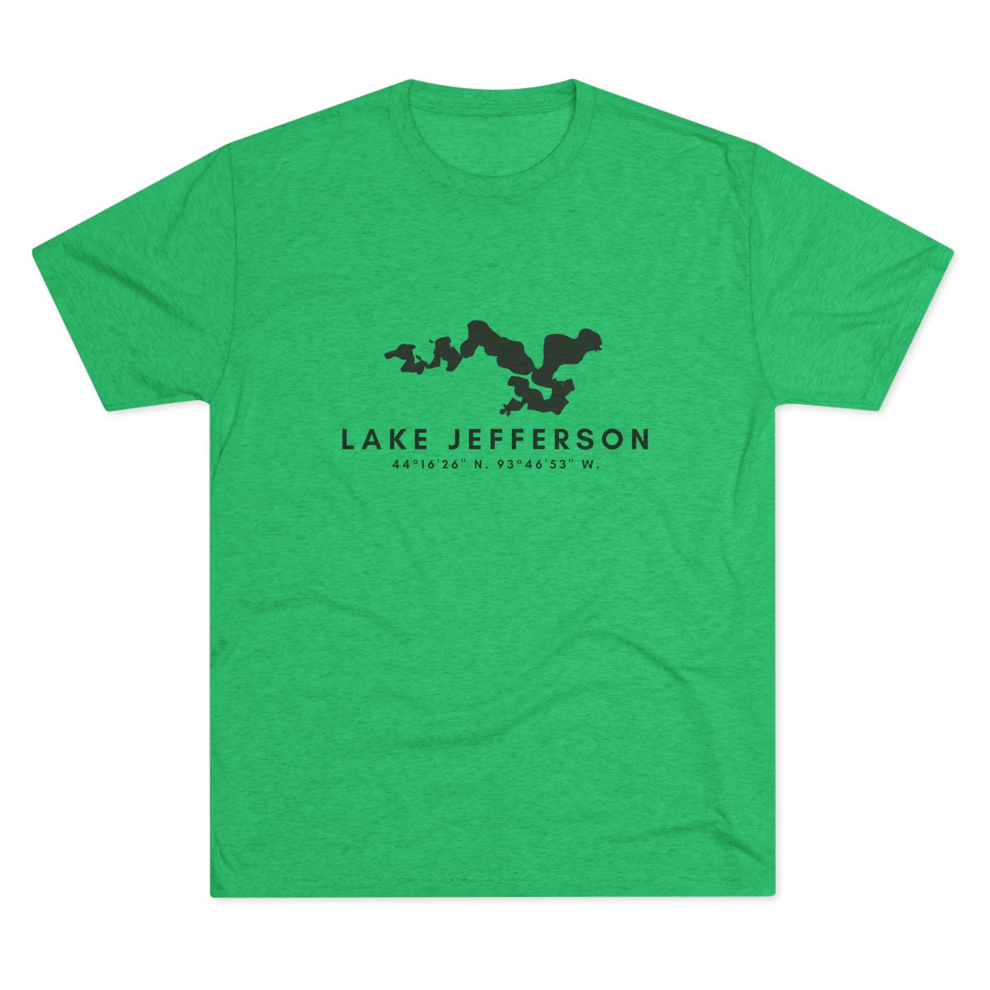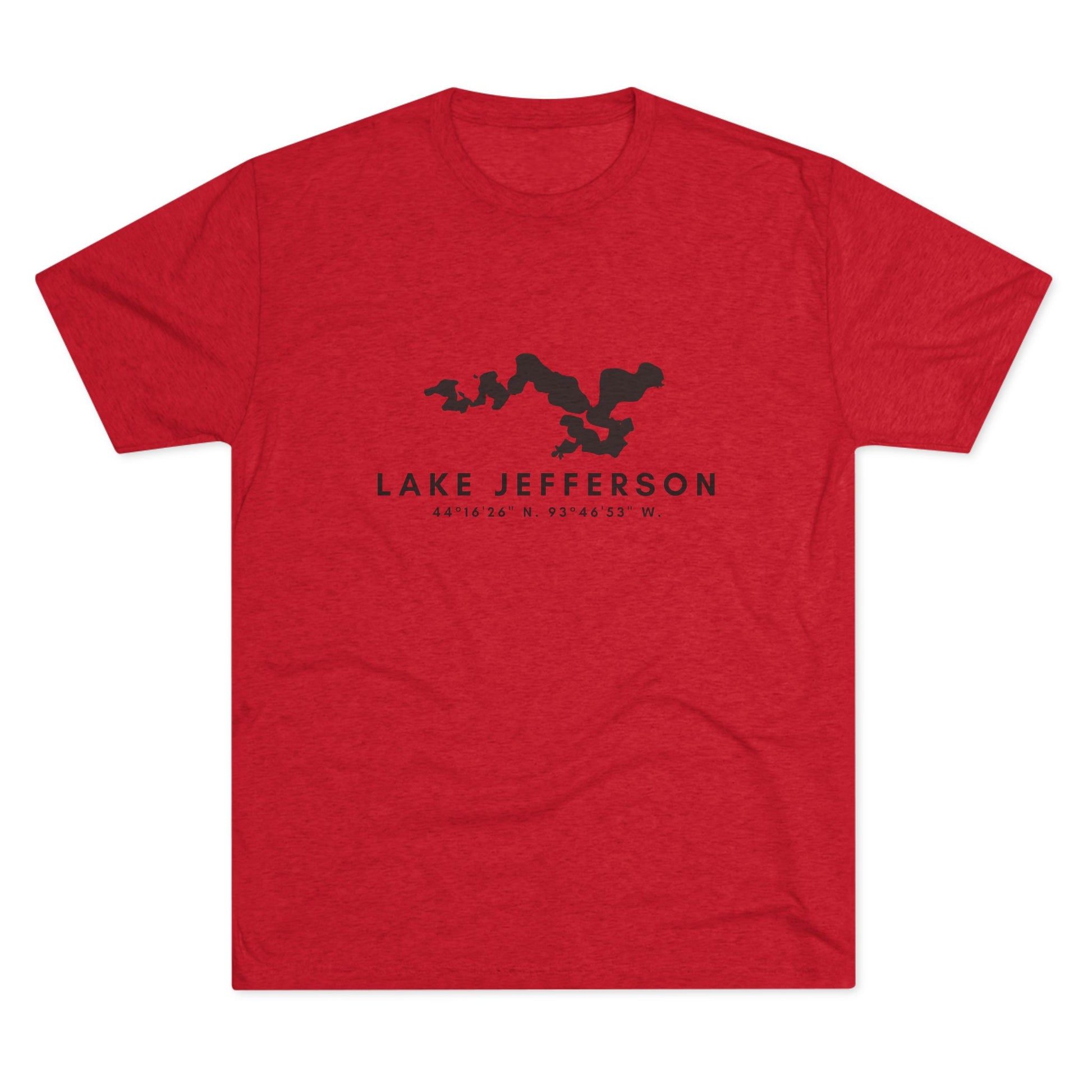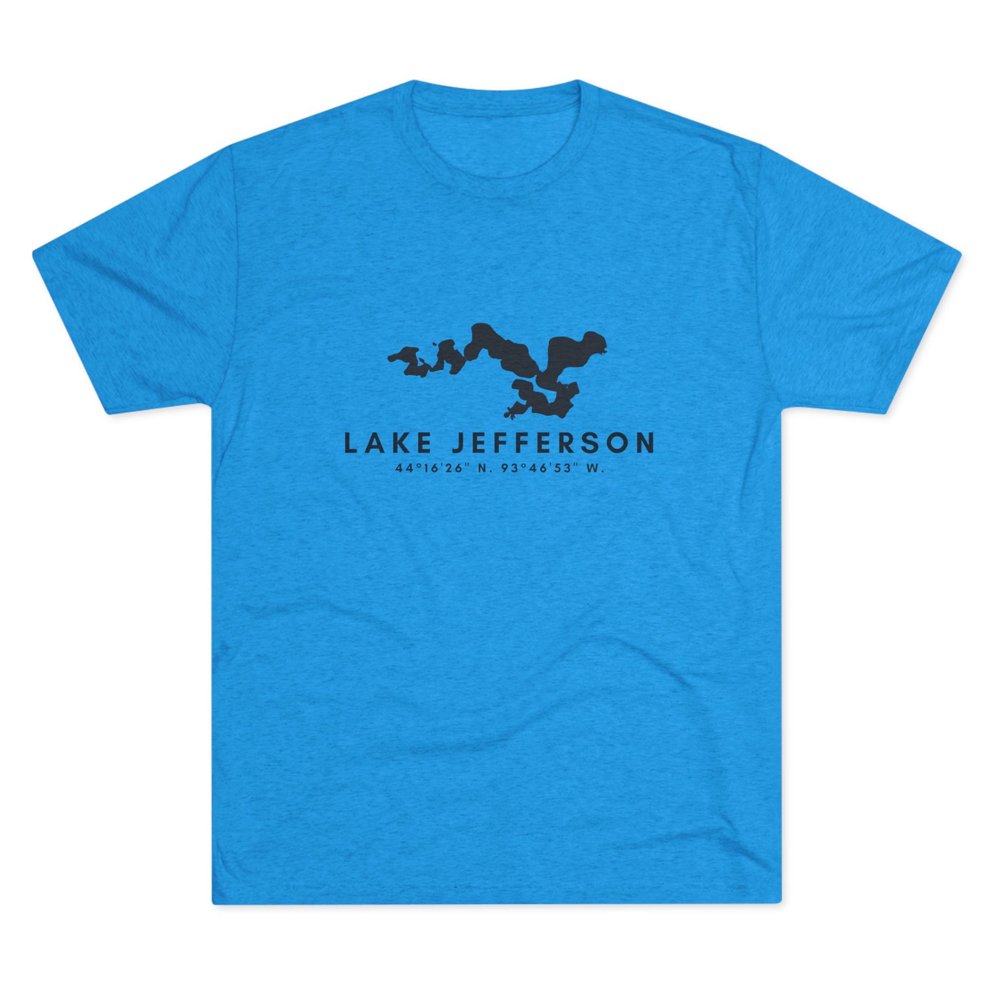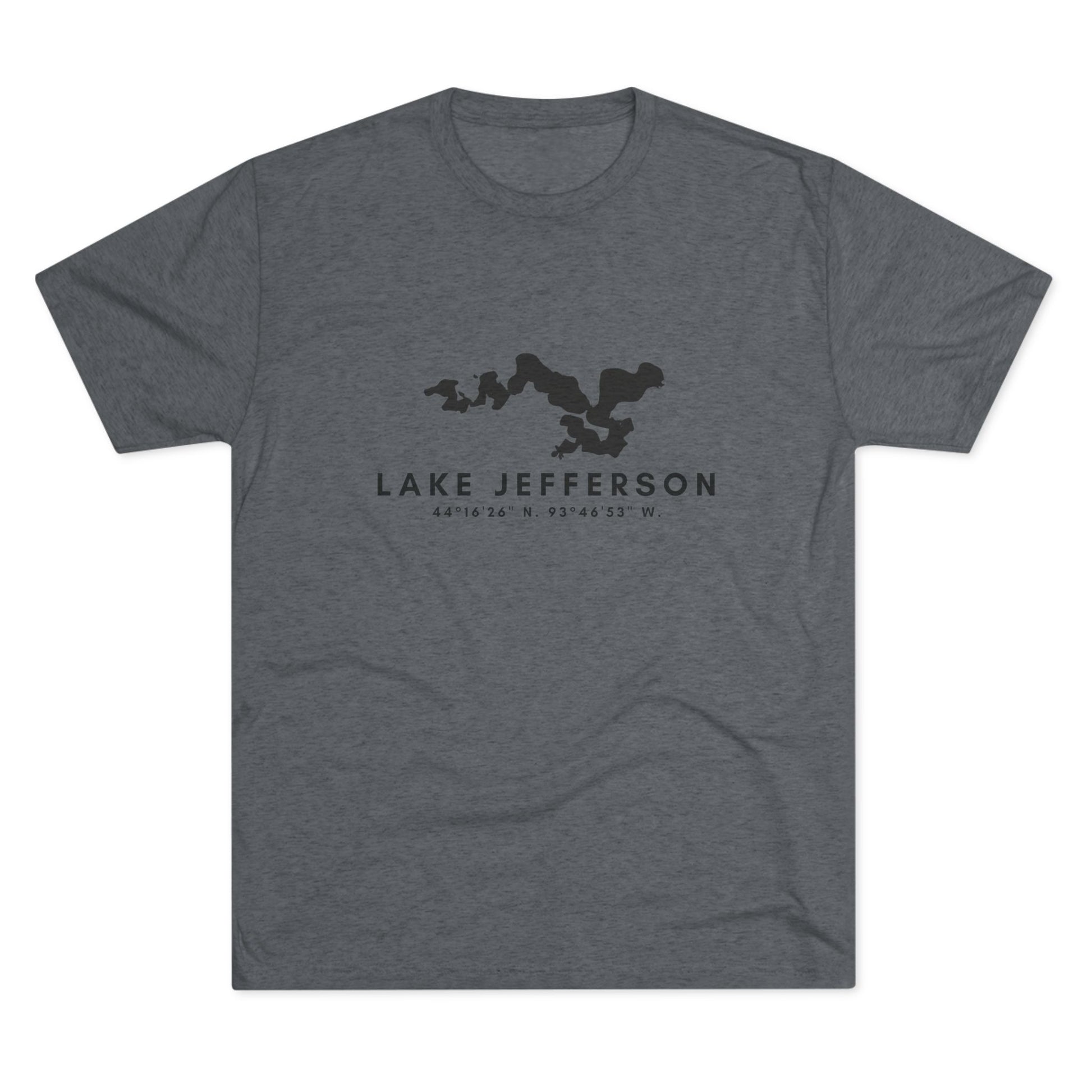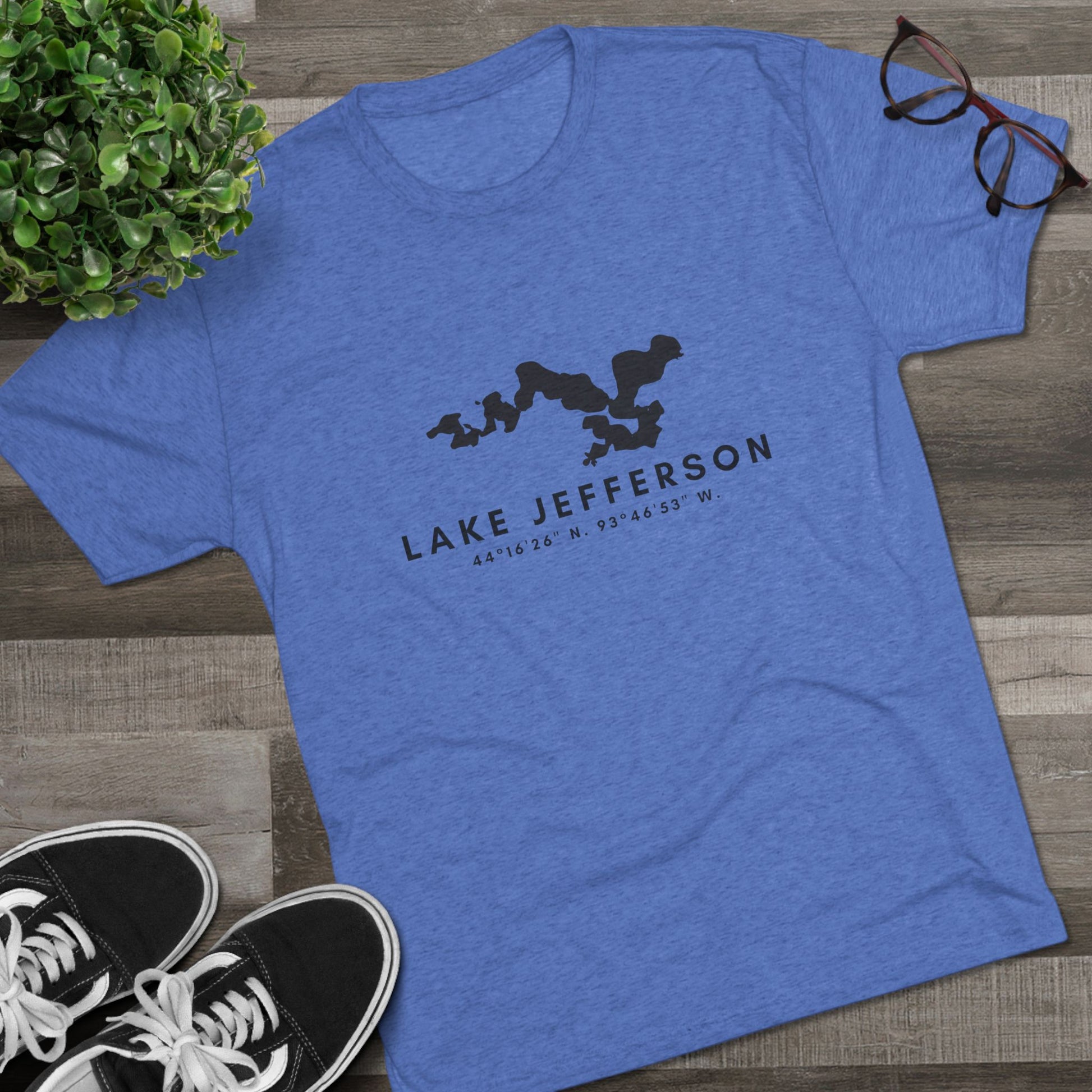 A soft tee with a clean Lake Jefferson silhouette printed on the front. The graphic has a worn lake-life look, the kind you see on shirts that spend summers at the cabin. The fit feels easy and works for everyday wear. You toss it on for a pontoon ride, a quick stop at the bait shop, or a wander down the shoreline. The simple lake outline keeps it subtle and familiar, a quiet nod to Minnesota days when you say it is not that cold while standing in flip-flops at 55 degrees.