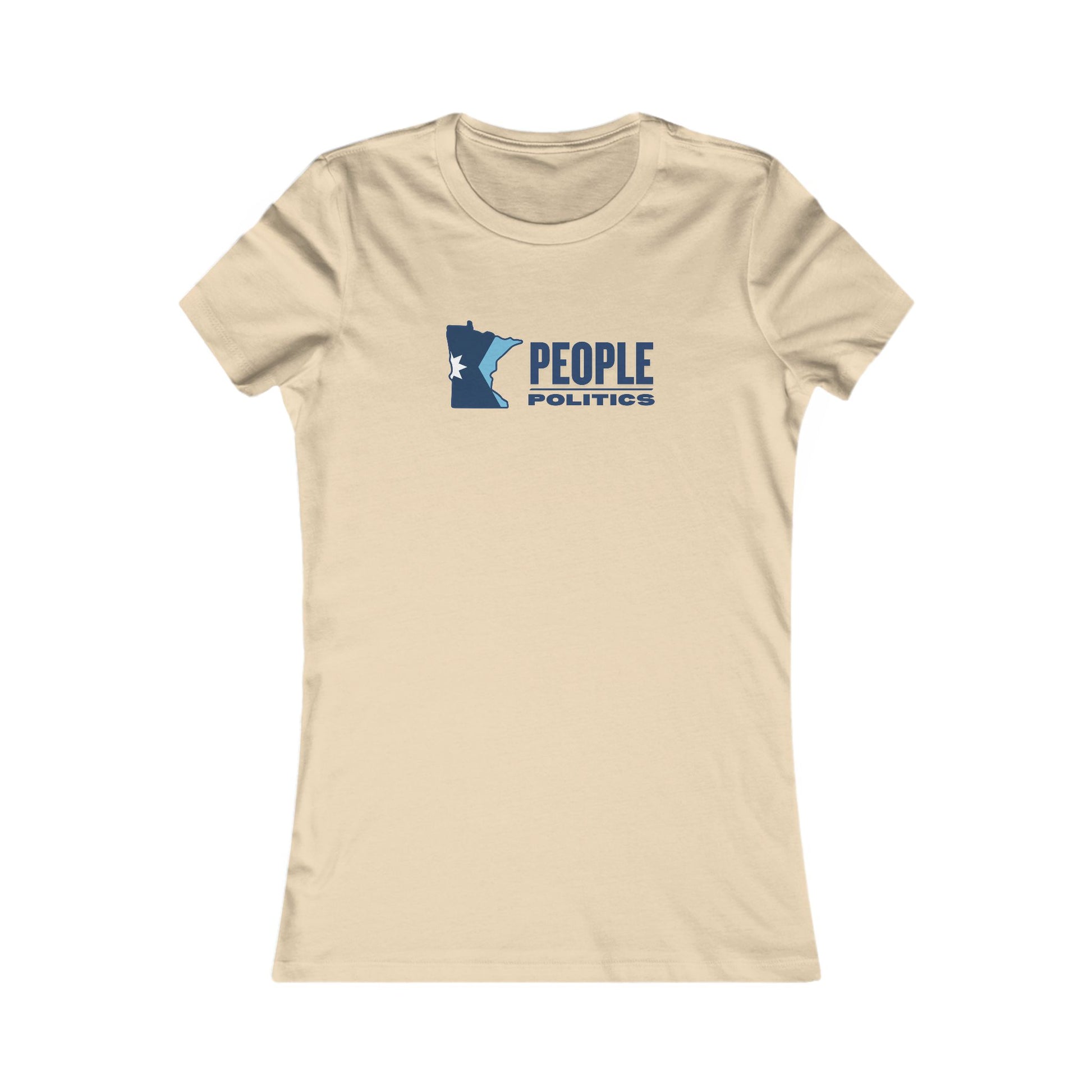 This women’s fitted t-shirt puts people first. The design features the Minnesota state flag with the words People and Politics separated by a clear line. The message reads as People over Politics. Simple. Direct. Minnesota rooted.