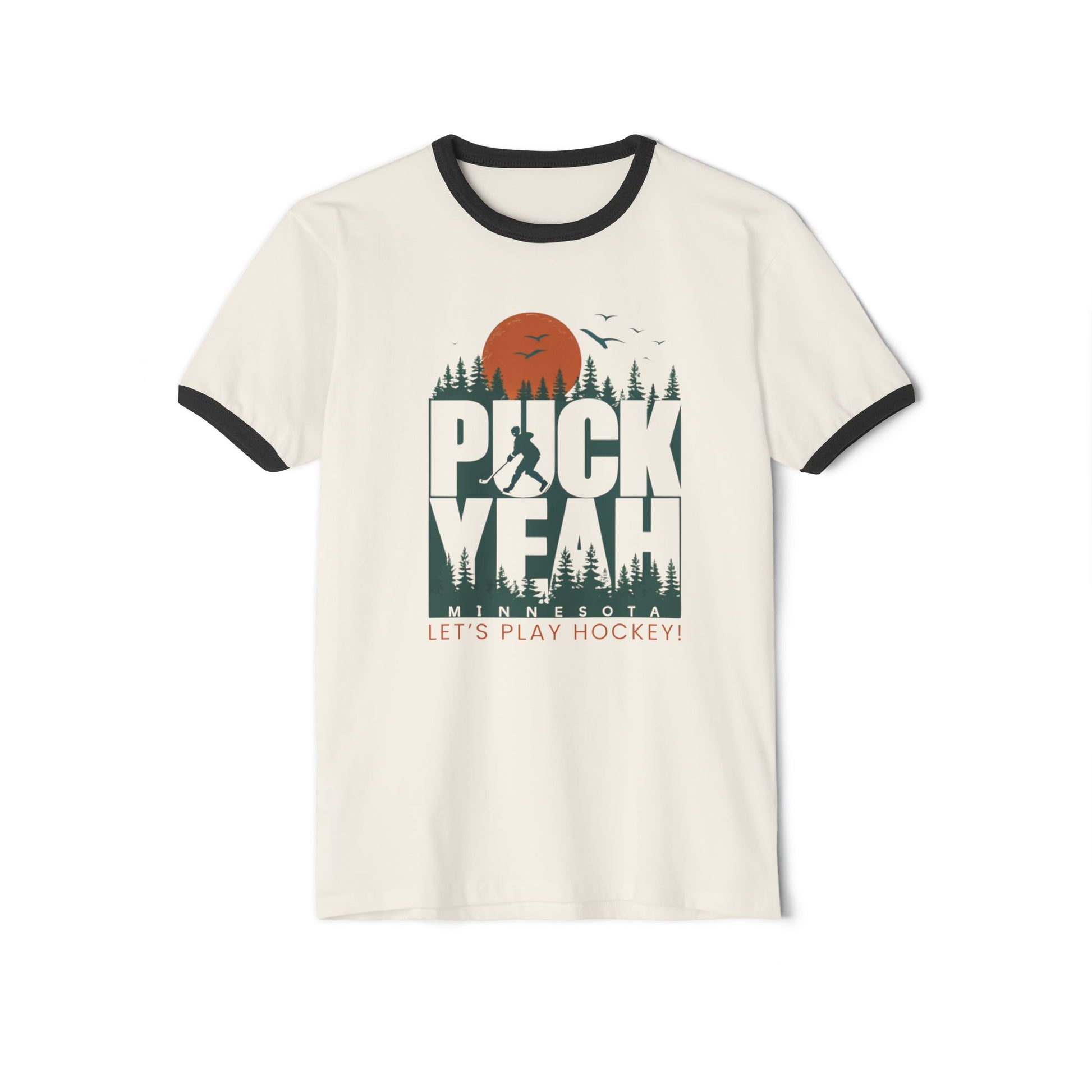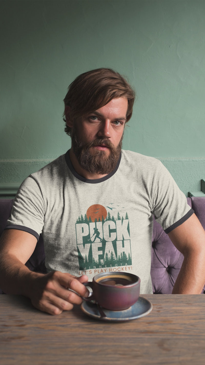 🏒 Puck Yeah, Minnesota! Ringer T-Shirt - Because We Actually Enjoy Frozen Everything Listen up, you beautiful State of Hockey fanatics! Ever needed a shirt that perfectly captures your love for the sport AND your questionable life choice of living somewhere that's frozen 9 months a year? Well, bundle up buttercup, because this is it! "Puck Yeah, Minnesota!" - because sometimes you need to tell the world you're Minnesota Nice with a dash of hockey spice.