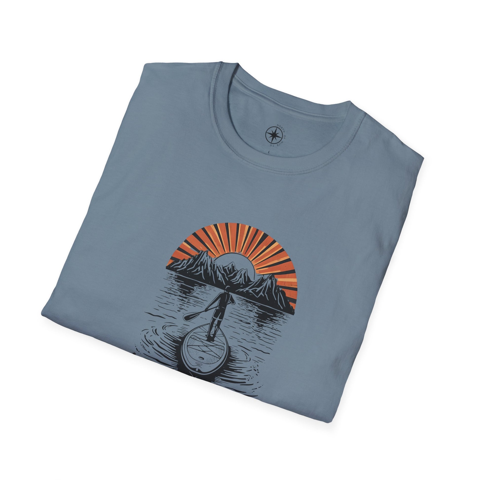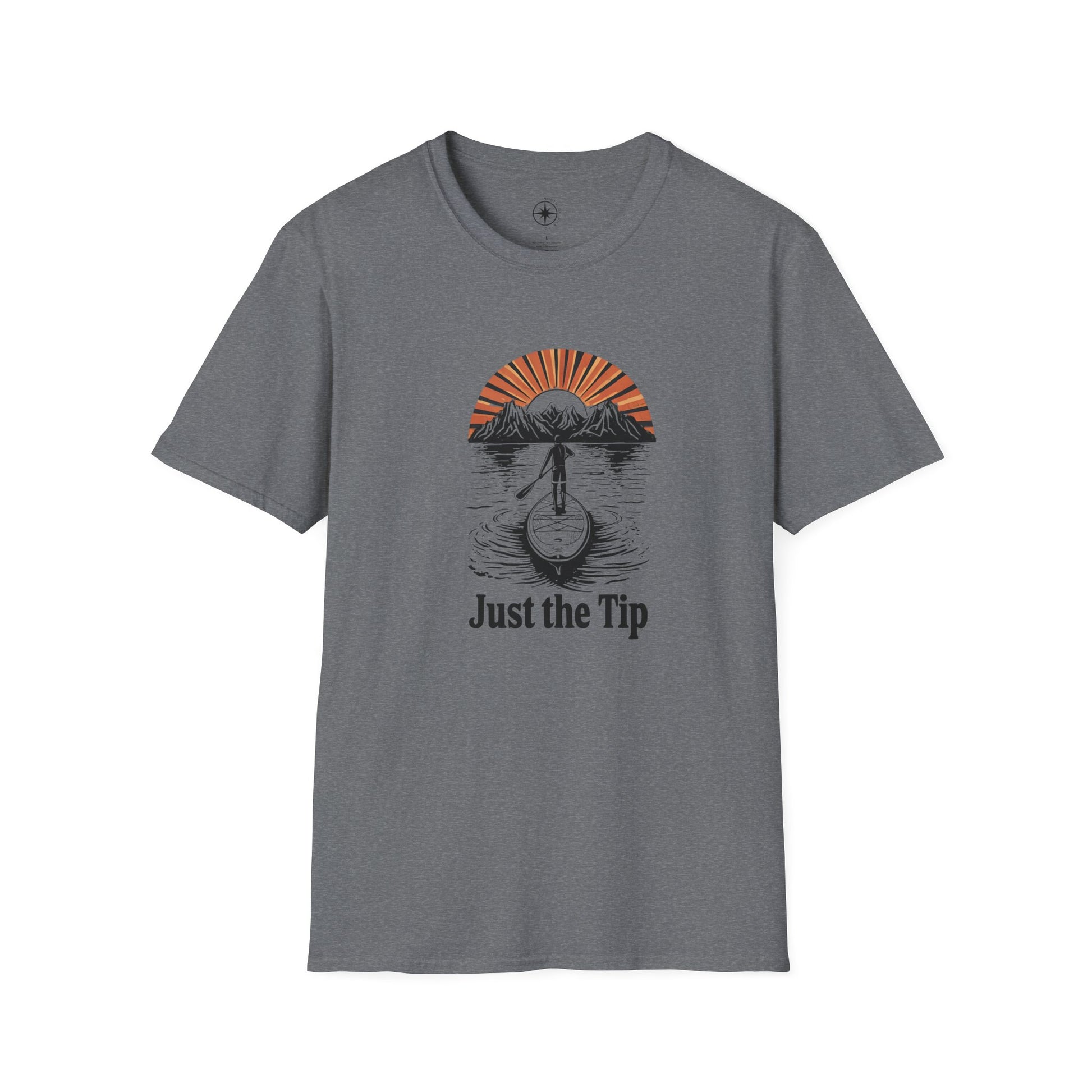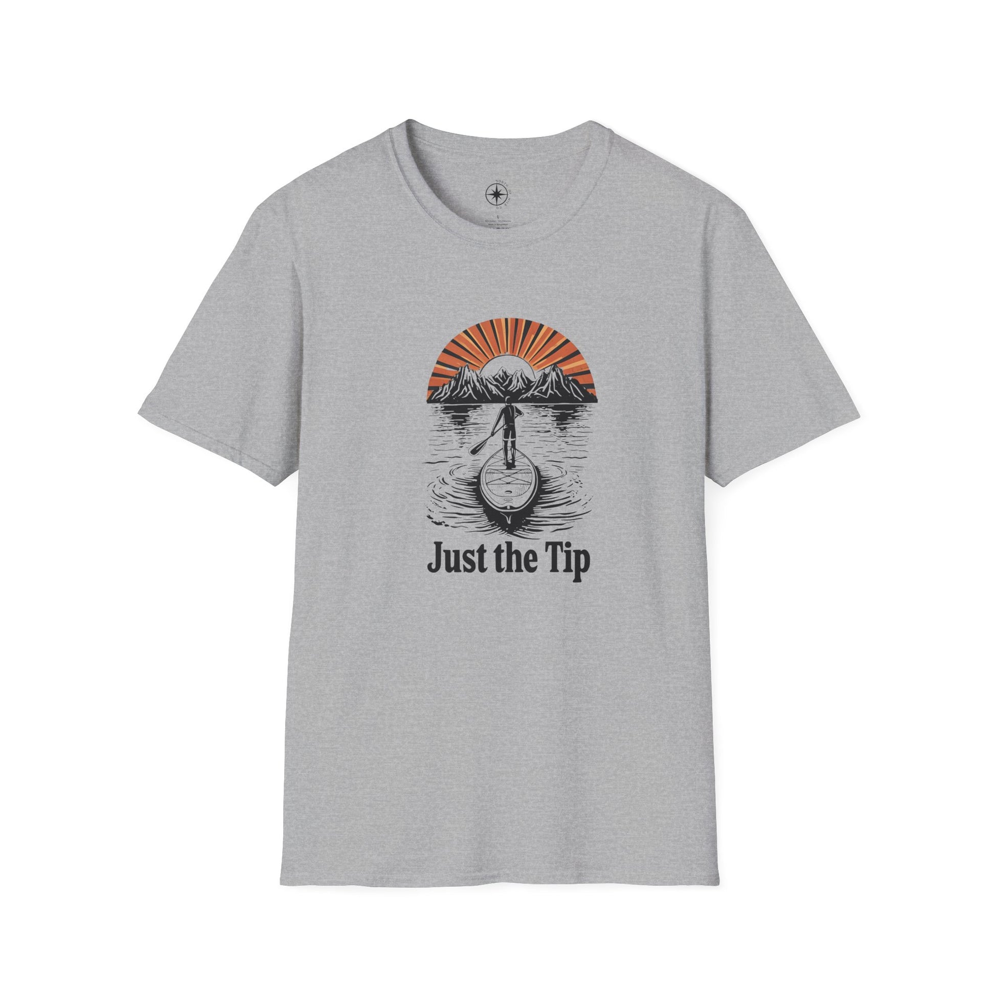 A fun and quirky t-shirt designed for paddleboarding enthusiasts with a playful 'just the tip' print. This t-shirt is perfect for casual outings and beach days, giving off a laid-back and carefree vibe. Ideal for adults looking for a unique and light-hearted addition to their wardrobe, especially for summer vacations and outdoor activities.Â
